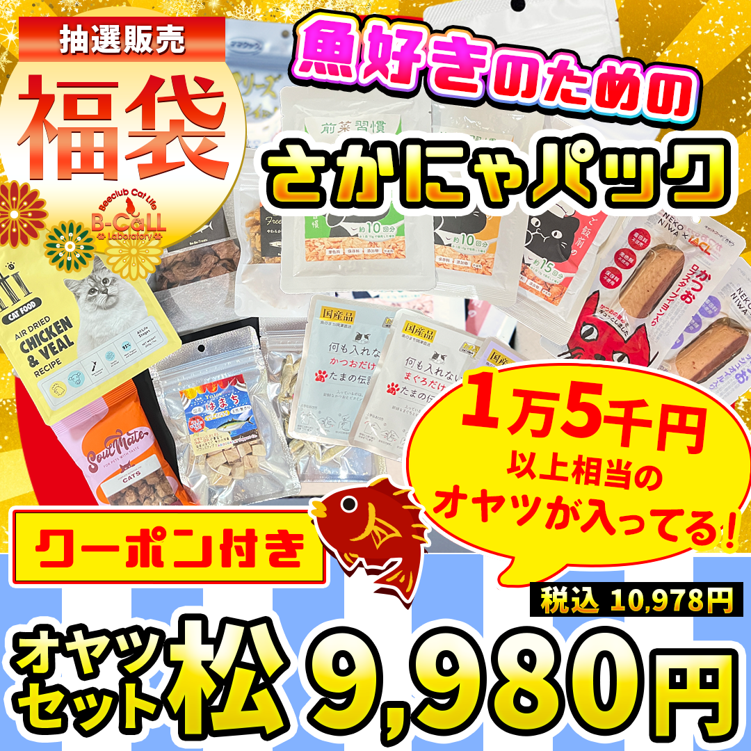 抽選予約【猫専用おやつ福袋「松パック」おさかにゃパック(お魚メイン)※送料無料】15,000円相当以上のオヤツ入り!色々試せる猫オヤツの超お得パック!20種以上入り!